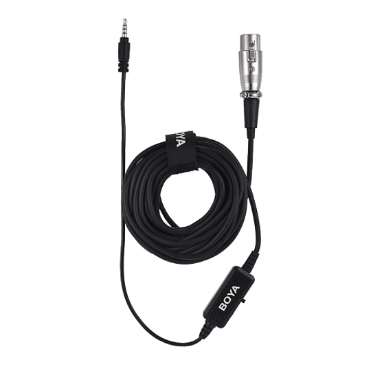 El BOYA BY-BCA6 es un cable de micrófono con preamplificador integrado, que conecta un micrófono dinámico XLR, un micrófono de condensador alimentado por batería XLR con un equipo TRRS de 3,5mm.