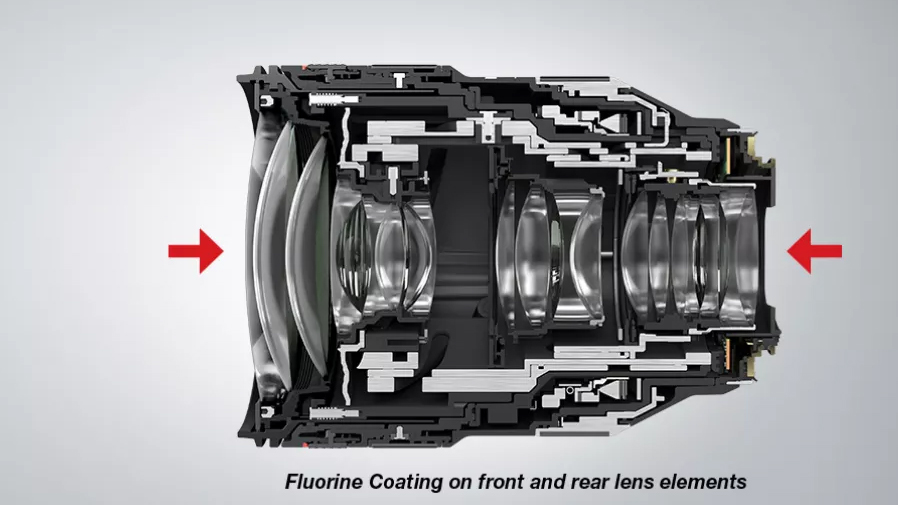 • Los elementos de dispersión ultrabaja (UD) se incluyen en el diseño óptico y ayudan a eliminar las franjas de color y las aberraciones cromáticas para lograr una mayor claridad y precisión de color en todo el rango del zoom.